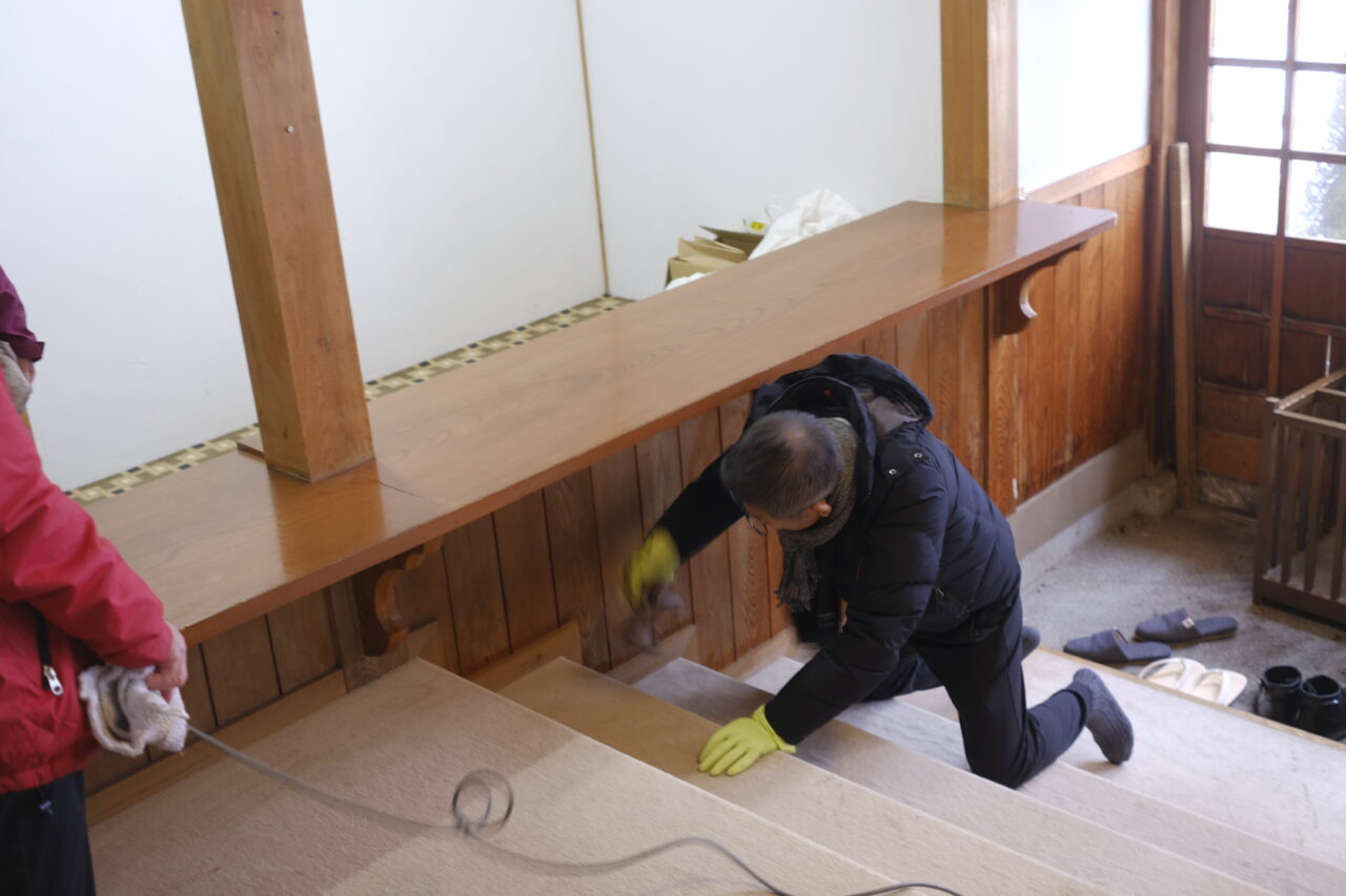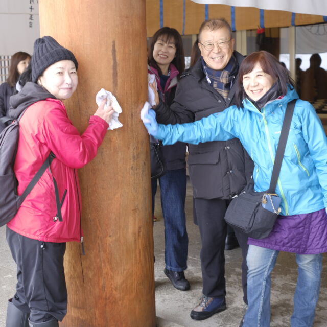 当日は、社殿回廊の拭き掃除や掃き掃除、参集殿の拭き掃除など、皆さんで心を込めてご奉仕しました。